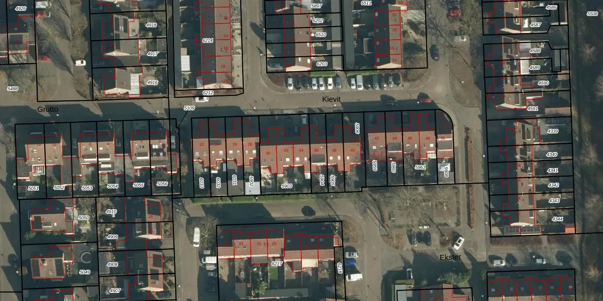 Het perceel waarop Kievit 34 staat heeft een oppervlakte van 440 m². Dit is een groot perceel. De perceeloppervlakte wordt geregistreerd door het Kadaster. Gedetailleerde informatie over de maten van dit perceel kunt u vinden in het rapport Kadastrale kaart met maatvoering van Kievit 34.