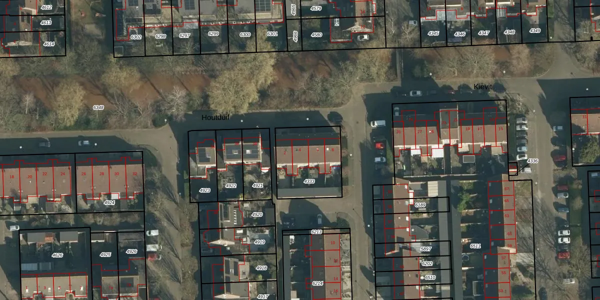 Het perceel waarop Kievit 4 staat heeft een oppervlakte van 513 m². Dit is een groot perceel. De perceeloppervlakte wordt geregistreerd door het Kadaster. Gedetailleerde informatie over de maten van dit perceel kunt u vinden in het rapport Kadastrale kaart met maatvoering van Kievit 4.