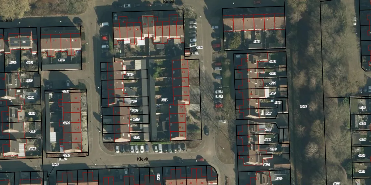 Het perceel waarop Kievit 61 staat heeft een oppervlakte van 2730 m². Dit is een zeer groot perceel. De perceeloppervlakte wordt geregistreerd door het Kadaster. Gedetailleerde informatie over de maten van dit perceel kunt u vinden in het rapport Kadastrale kaart met maatvoering van Kievit 61.