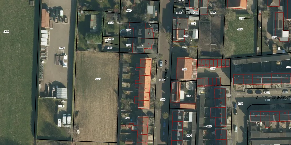 Het perceel waarop Loonsestraat 12 staat heeft een oppervlakte van 2628 m². Dit is een zeer groot perceel. De perceeloppervlakte wordt geregistreerd door het Kadaster. Gedetailleerde informatie over de maten van dit perceel kunt u vinden in het rapport Kadastrale kaart met maatvoering van Loonsestraat 12.