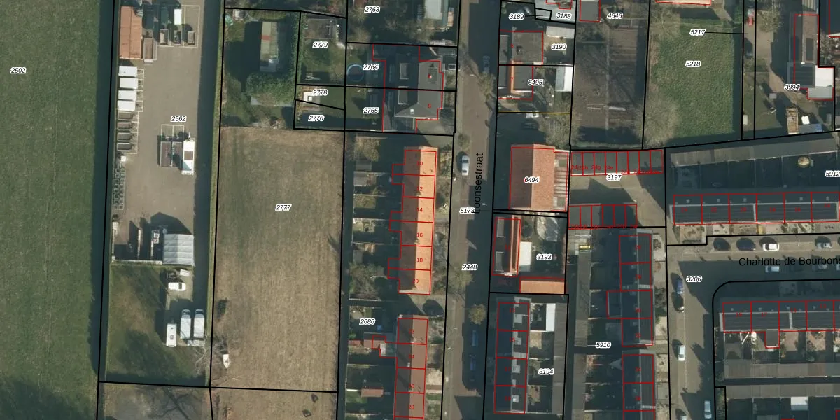 Het perceel waarop Loonsestraat 14 staat heeft een oppervlakte van 2628 m². Dit is een zeer groot perceel. De perceeloppervlakte wordt geregistreerd door het Kadaster. Gedetailleerde informatie over de maten van dit perceel kunt u vinden in het rapport Kadastrale kaart met maatvoering van Loonsestraat 14.