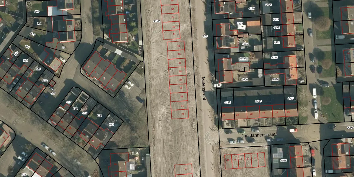 Het perceel waarop Molenstraat 35 staat heeft een oppervlakte van 7243 m². Dit is een zeer groot perceel. De perceeloppervlakte wordt geregistreerd door het Kadaster. Gedetailleerde informatie over de maten van dit perceel kunt u vinden in het rapport Kadastrale kaart met maatvoering van Molenstraat 35.