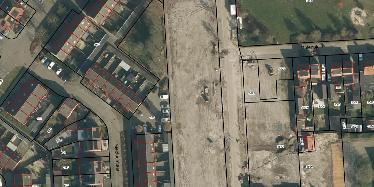 Het perceel waarop Molenstraat 63-b staat heeft een oppervlakte van 7243 m². Dit is een zeer groot perceel. De perceeloppervlakte wordt geregistreerd door het Kadaster. Gedetailleerde informatie over de maten van dit perceel kunt u vinden in het rapport Kadastrale kaart met maatvoering van Molenstraat 63-b.