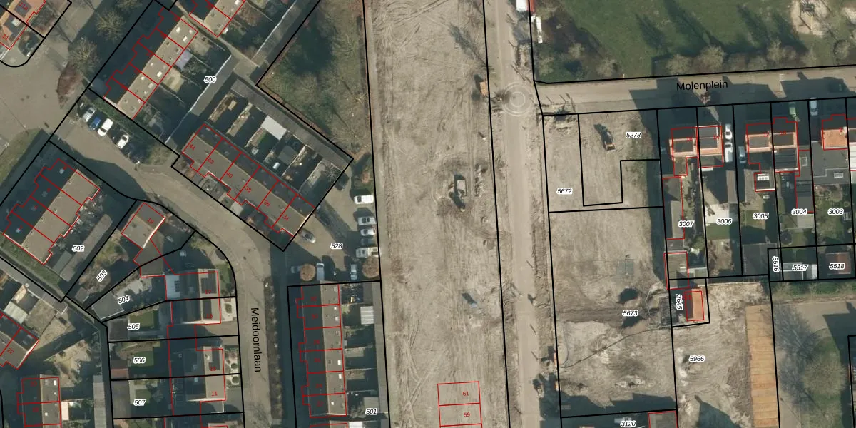 Het perceel waarop Molenstraat 75-c staat heeft een oppervlakte van 7243 m². Dit is een zeer groot perceel. De perceeloppervlakte wordt geregistreerd door het Kadaster. Gedetailleerde informatie over de maten van dit perceel kunt u vinden in het rapport Kadastrale kaart met maatvoering van Molenstraat 75-c.