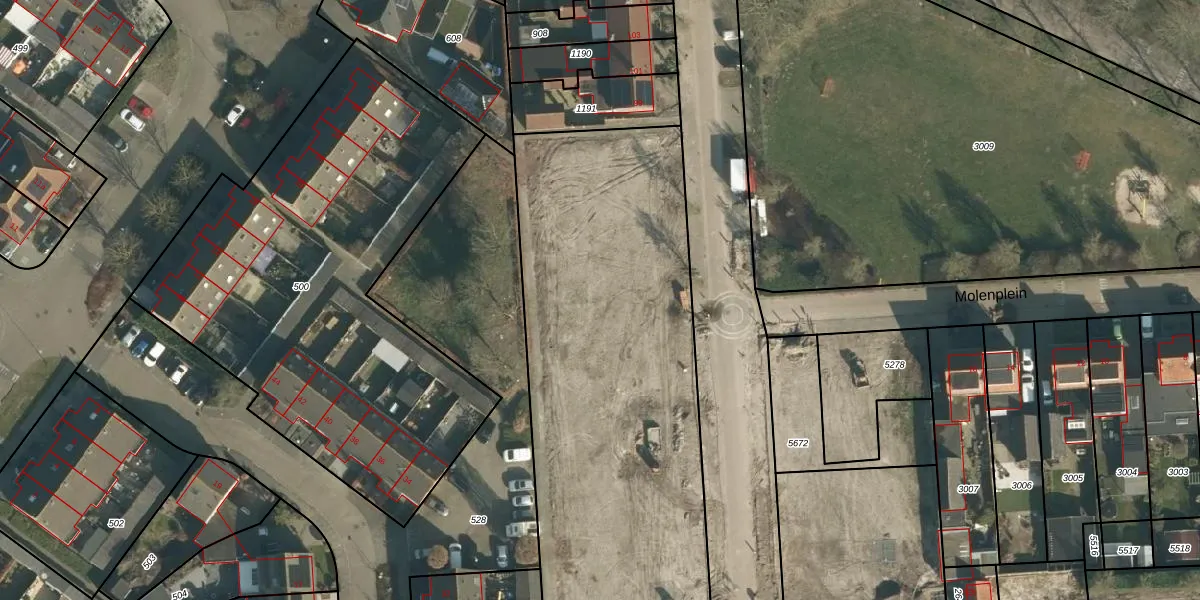 Het perceel waarop Molenstraat 75-h staat heeft een oppervlakte van 7243 m². Dit is een zeer groot perceel. De perceeloppervlakte wordt geregistreerd door het Kadaster. Gedetailleerde informatie over de maten van dit perceel kunt u vinden in het rapport Kadastrale kaart met maatvoering van Molenstraat 75-h.