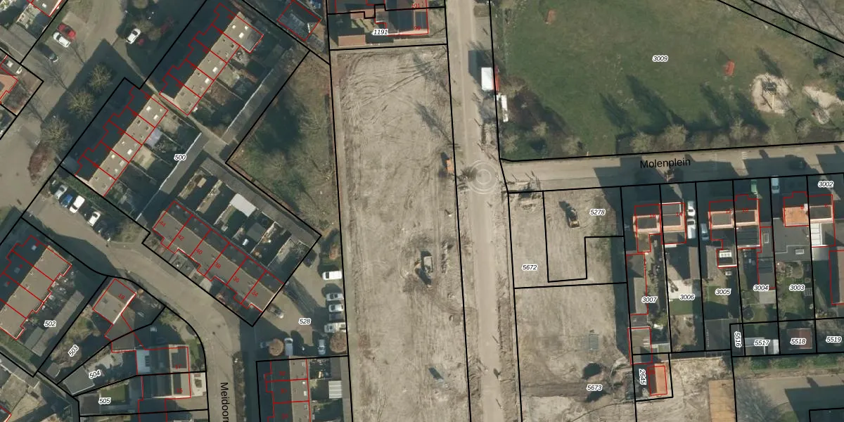 Het perceel waarop Molenstraat 93 staat heeft een oppervlakte van 7243 m². Dit is een zeer groot perceel. De perceeloppervlakte wordt geregistreerd door het Kadaster. Gedetailleerde informatie over de maten van dit perceel kunt u vinden in het rapport Kadastrale kaart met maatvoering van Molenstraat 93.