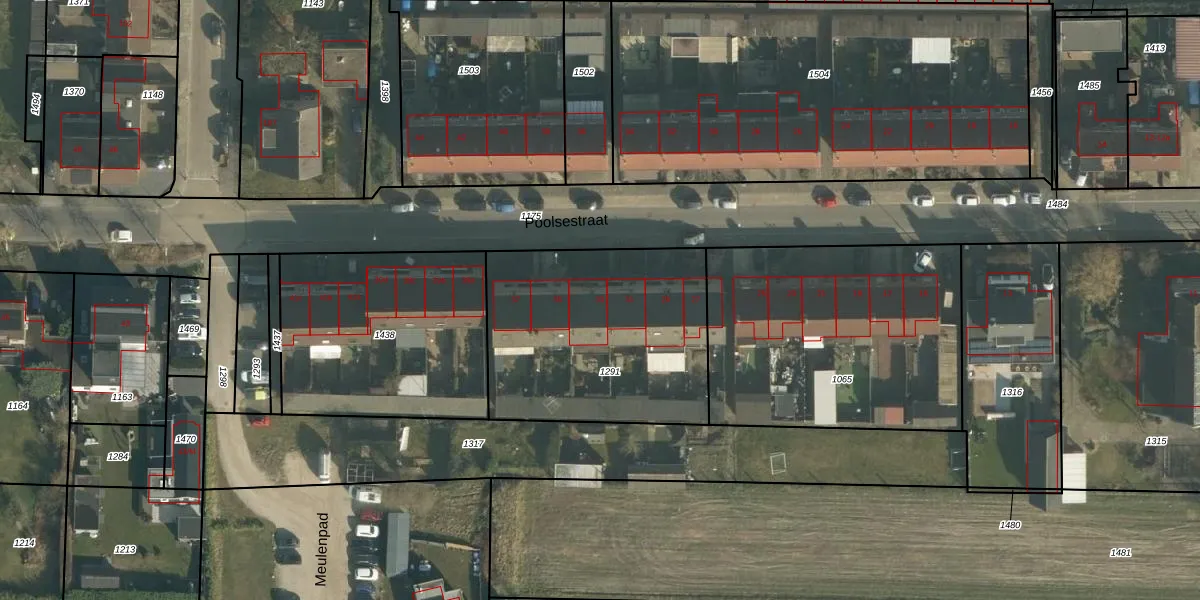 Het perceel waarop Poolsestraat 33 staat heeft een oppervlakte van 1068 m². Dit is een zeer groot perceel. De perceeloppervlakte wordt geregistreerd door het Kadaster. Gedetailleerde informatie over de maten van dit perceel kunt u vinden in het rapport Kadastrale kaart met maatvoering van Poolsestraat 33.