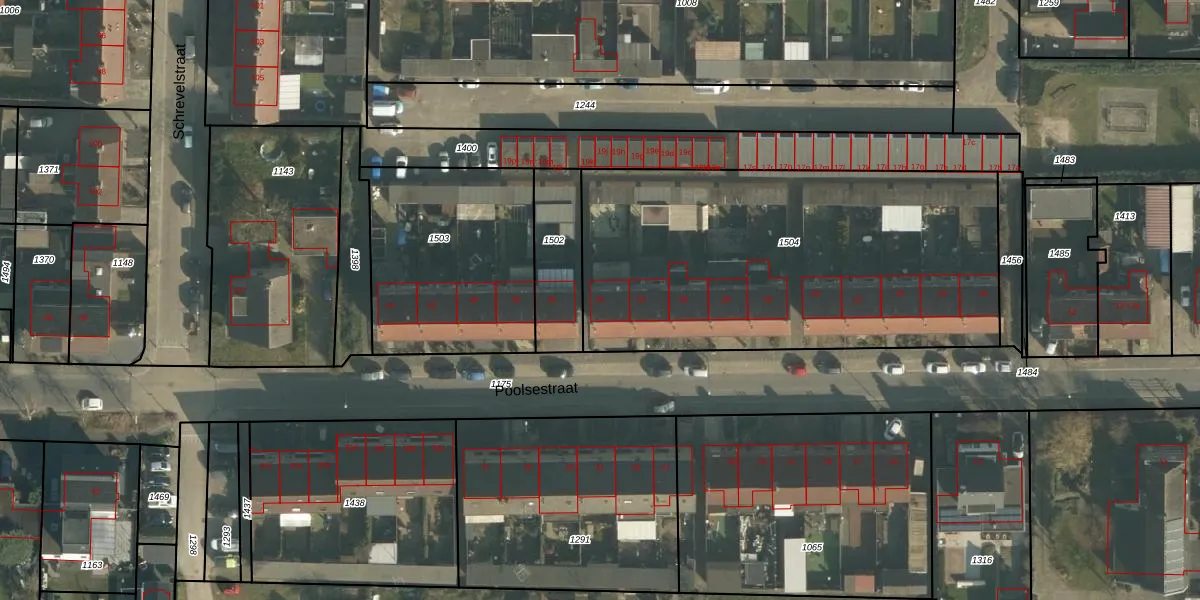 Het perceel waarop Poolsestraat 34 staat heeft een oppervlakte van 2071 m². Dit is een zeer groot perceel. De perceeloppervlakte wordt geregistreerd door het Kadaster. Gedetailleerde informatie over de maten van dit perceel kunt u vinden in het rapport Kadastrale kaart met maatvoering van Poolsestraat 34.