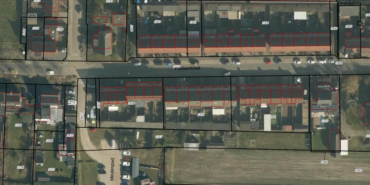 Het perceel waarop Poolsestraat 35 staat heeft een oppervlakte van 1068 m². Dit is een zeer groot perceel. De perceeloppervlakte wordt geregistreerd door het Kadaster. Gedetailleerde informatie over de maten van dit perceel kunt u vinden in het rapport Kadastrale kaart met maatvoering van Poolsestraat 35.