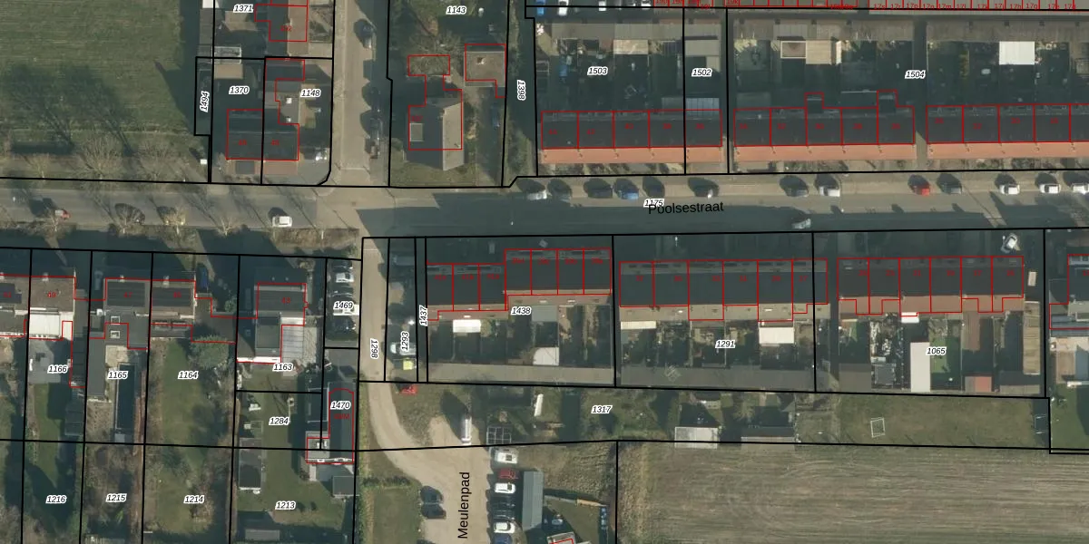 Het perceel waarop Poolsestraat 39-c staat heeft een oppervlakte van 948 m². Dit is een groot perceel. De perceeloppervlakte wordt geregistreerd door het Kadaster. Gedetailleerde informatie over de maten van dit perceel kunt u vinden in het rapport Kadastrale kaart met maatvoering van Poolsestraat 39-c.