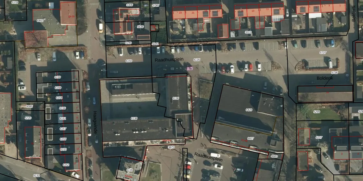 Het perceel waarop Raadhuisplein 30-m staat heeft een oppervlakte van 509 m². Dit is een groot perceel. De perceeloppervlakte wordt geregistreerd door het Kadaster. Gedetailleerde informatie over de maten van dit perceel kunt u vinden in het rapport Kadastrale kaart met maatvoering van Raadhuisplein 30-m.
