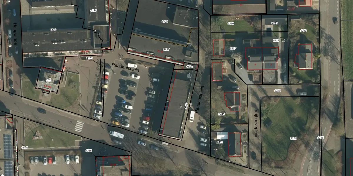 Het perceel waarop Raadhuisplein 34 staat heeft een oppervlakte van 532 m². Dit is een groot perceel. De perceeloppervlakte wordt geregistreerd door het Kadaster. Gedetailleerde informatie over de maten van dit perceel kunt u vinden in het rapport Kadastrale kaart met maatvoering van Raadhuisplein 34.