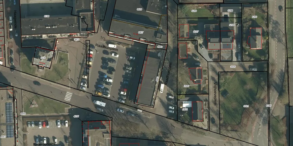 Het perceel waarop Raadhuisplein 35 staat heeft een oppervlakte van 532 m². Dit is een groot perceel. De perceeloppervlakte wordt geregistreerd door het Kadaster. Gedetailleerde informatie over de maten van dit perceel kunt u vinden in het rapport Kadastrale kaart met maatvoering van Raadhuisplein 35.