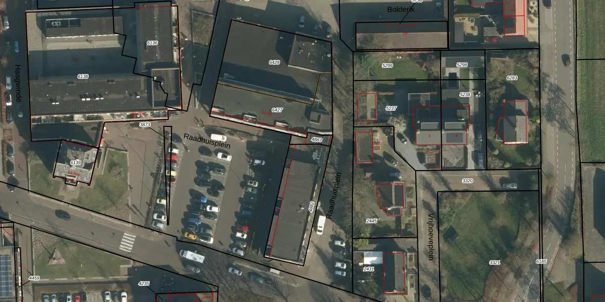 Het perceel waarop Raadhuisplein 39 staat heeft een oppervlakte van 532 m². Dit is een groot perceel. De perceeloppervlakte wordt geregistreerd door het Kadaster. Gedetailleerde informatie over de maten van dit perceel kunt u vinden in het rapport Kadastrale kaart met maatvoering van Raadhuisplein 39.