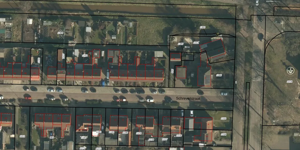 Het perceel waarop Schrevelstraat 4 staat heeft een oppervlakte van 4337 m². Dit is een zeer groot perceel. De perceeloppervlakte wordt geregistreerd door het Kadaster. Gedetailleerde informatie over de maten van dit perceel kunt u vinden in het rapport Kadastrale kaart met maatvoering van Schrevelstraat 4.