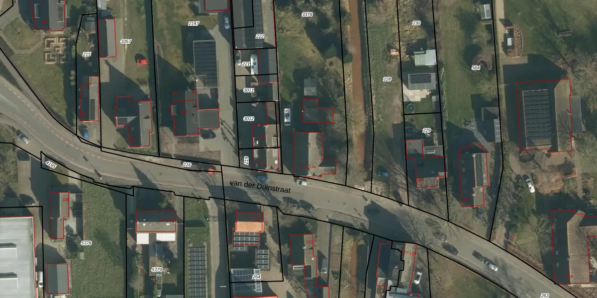 van der Duinstraat 112-a is gelegen op kadastraal perceel SPR01C3378. Deze kadastrale aanduiding is uniek en wordt gebruikt door het Kadaster om eigendomsrechten en andere zakelijke rechten vast te leggen. Het perceel maakt onderdeel uit van de kadastrale gemeente Sprang.
