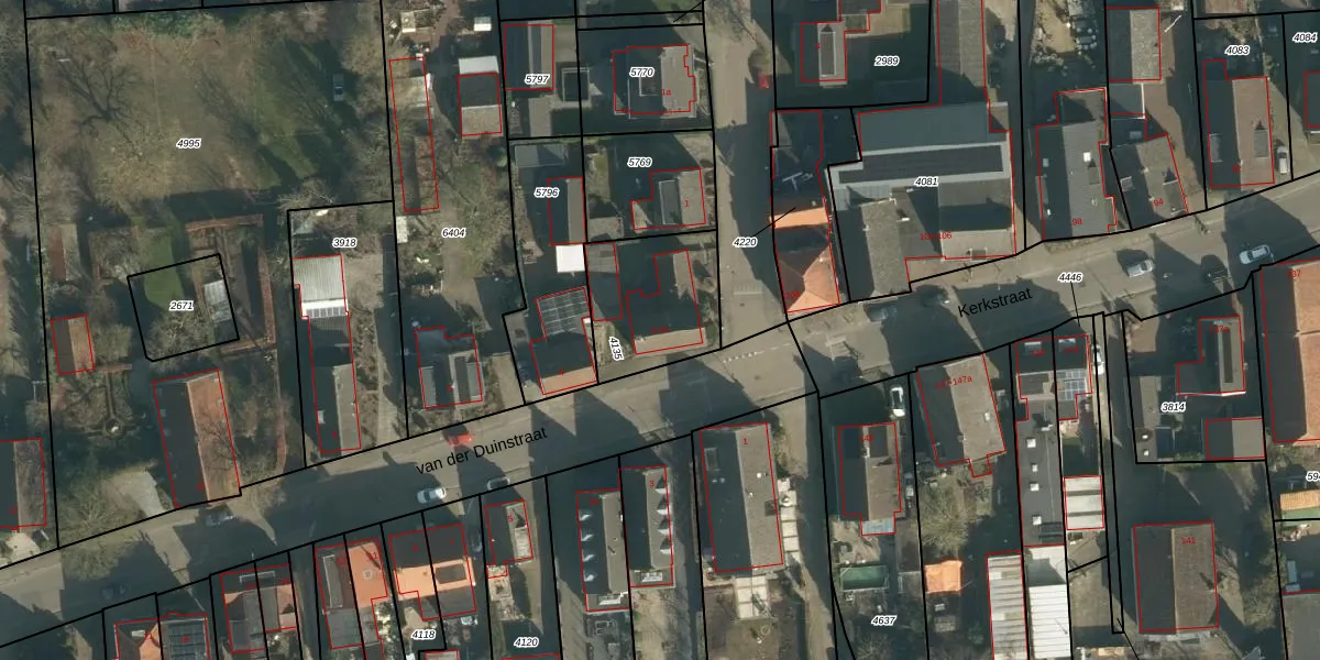 van der Duinstraat 2 is gelegen op kadastraal perceel SPR01B4135. Deze kadastrale aanduiding is uniek en wordt gebruikt door het Kadaster om eigendomsrechten en andere zakelijke rechten vast te leggen. Het perceel maakt onderdeel uit van de kadastrale gemeente Sprang.