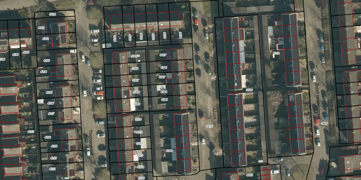 Gebruik de zoekbalk of klik op een perceel voor informatie over de adressen binnen dit perceel.