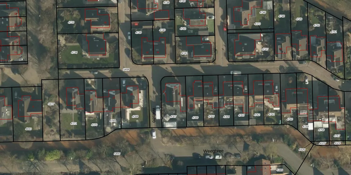 Het perceel waarop Walstro 23 staat heeft een oppervlakte van 409 m². Dit is een groot perceel. De perceeloppervlakte wordt geregistreerd door het Kadaster. Gedetailleerde informatie over de maten van dit perceel kunt u vinden in het rapport Kadastrale kaart met maatvoering van Walstro 23.