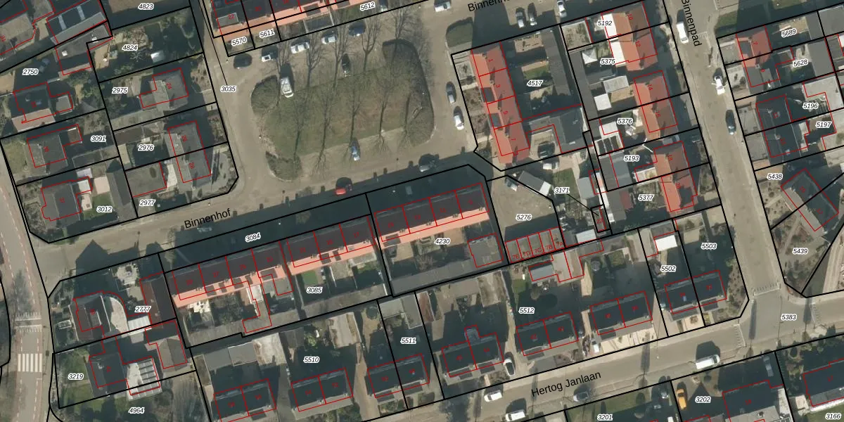 Het perceel waarop Binnenhof 13 staat heeft een oppervlakte van 721 m². Dit is een groot perceel. De perceeloppervlakte wordt geregistreerd door het Kadaster. Gedetailleerde informatie over de maten van dit perceel kunt u vinden in het rapport Kadastrale kaart met maatvoering van Binnenhof 13.