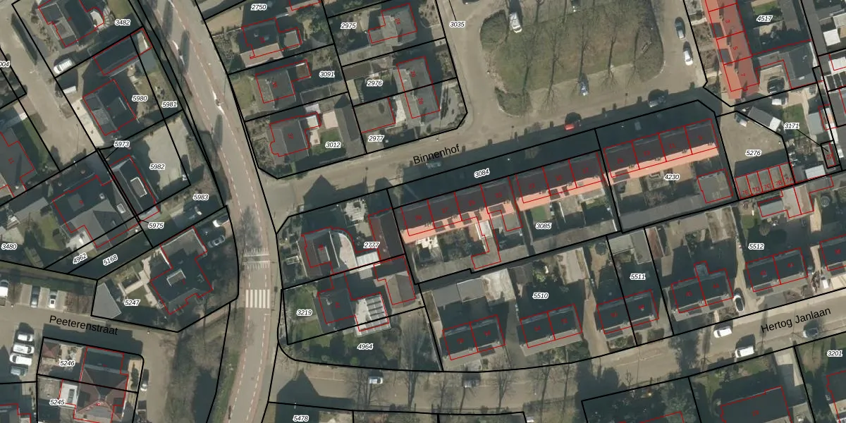 Het perceel waarop Binnenhof 29 staat heeft een oppervlakte van 990 m². Dit is een groot perceel. De perceeloppervlakte wordt geregistreerd door het Kadaster. Gedetailleerde informatie over de maten van dit perceel kunt u vinden in het rapport Kadastrale kaart met maatvoering van Binnenhof 29.