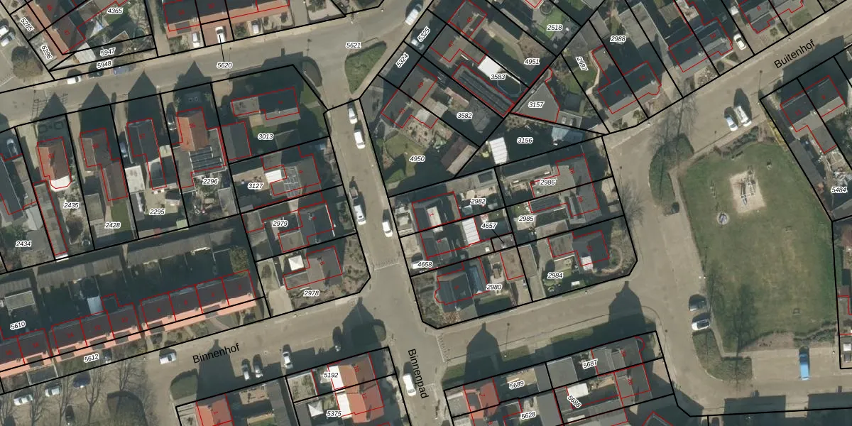 Het perceel waarop Binnenpad 1 staat heeft een oppervlakte van 251 m². Dit is een middelgroot perceel. De perceeloppervlakte wordt geregistreerd door het Kadaster. Gedetailleerde informatie over de maten van dit perceel kunt u vinden in het rapport Kadastrale kaart met maatvoering van Binnenpad 1.