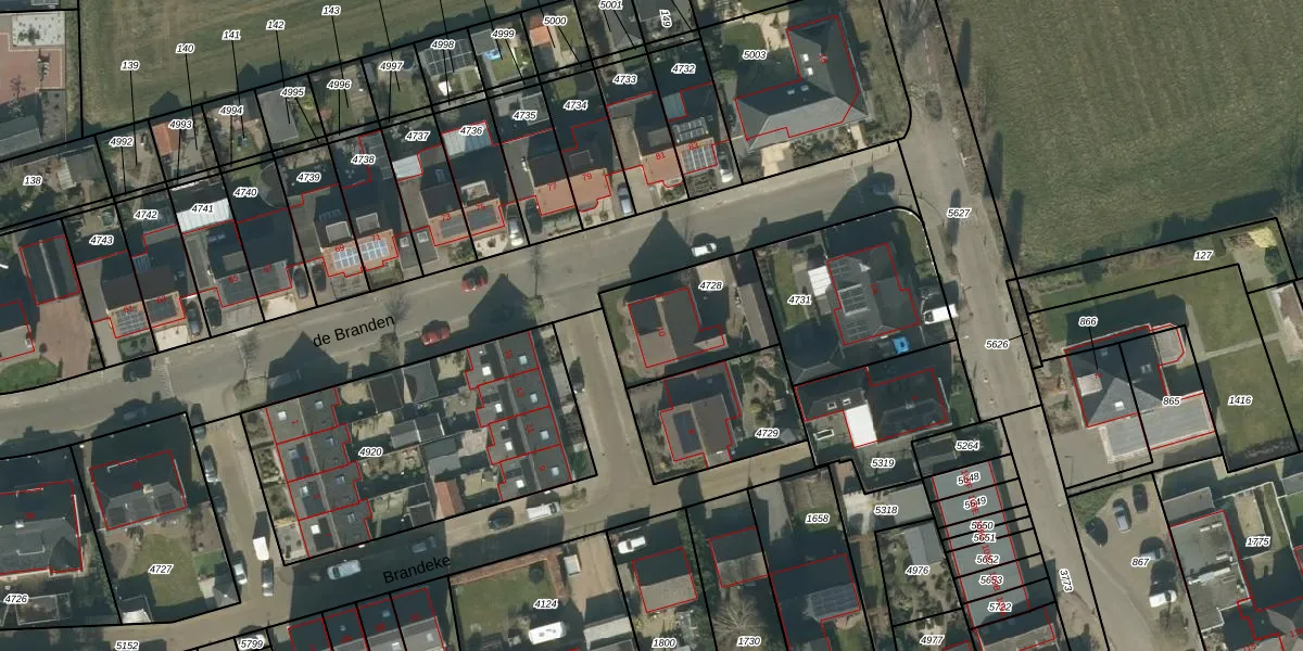 Het perceel waarop Brandeke 10 staat heeft een oppervlakte van 375 m². Dit is een groot perceel. De perceeloppervlakte wordt geregistreerd door het Kadaster. Gedetailleerde informatie over de maten van dit perceel kunt u vinden in het rapport Kadastrale kaart met maatvoering van Brandeke 10.