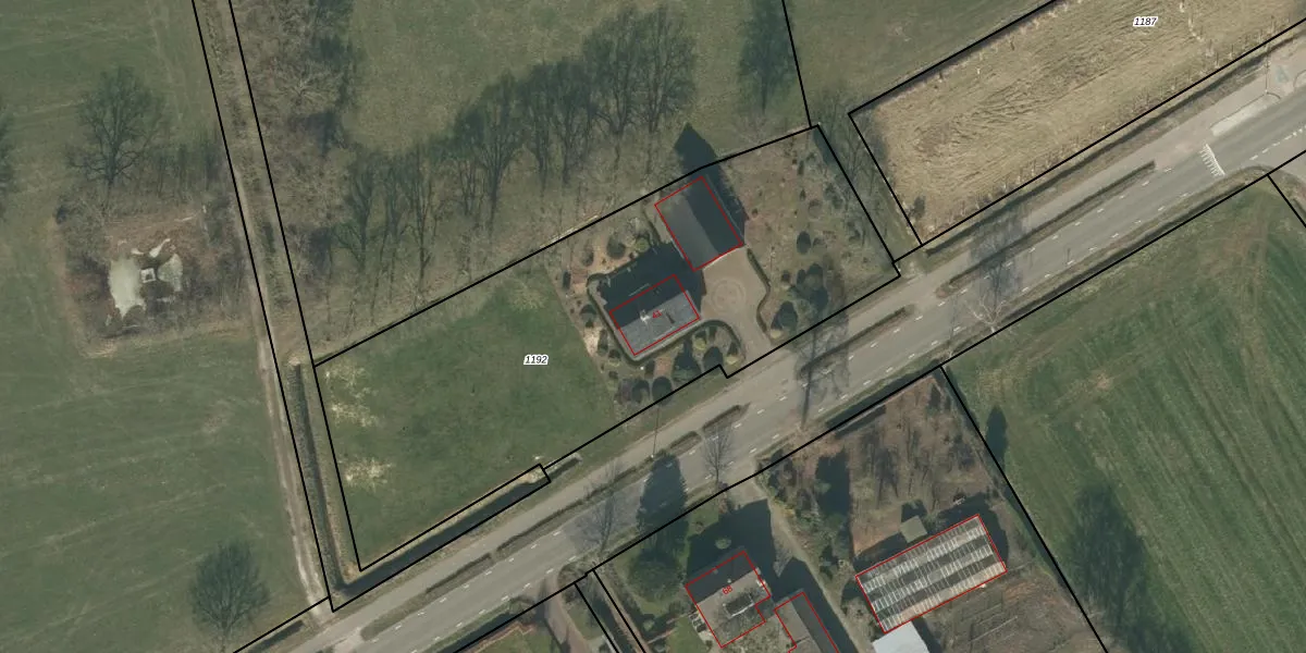 Het adres is gelegen op perceel 1192 in de sectie T en de kadastrale gemeente Rucphen. De kadastrale aanduiding is aldus RPN00-T-1192. Het perceel is kleiner dan gemiddeld in Rucphen. Het perceel is 2630 m² groot, terwijl het gemiddelde ligt op 4091,58 m². De grootste perceeloppervlakte in de kadastrale gemeente is 43,3 ha. De kleinste oppervlakte bedraagt 0 m². Er zijn geen andere adressen aanwezig op het perceel. In de Basisregistratie Kadaster (BRK) werden de grenzen van het perceel geregistreerd op 11-09-2009.