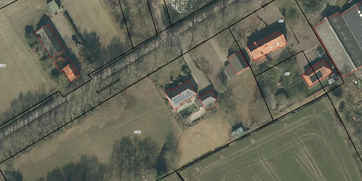 Het perceel waarop Bredasebaan 84 staat heeft een oppervlakte van 7700 m². Dit is een zeer groot perceel. De perceeloppervlakte wordt geregistreerd door het Kadaster. Gedetailleerde informatie over de maten van dit perceel kunt u vinden in het rapport Kadastrale kaart met maatvoering van Bredasebaan 84.