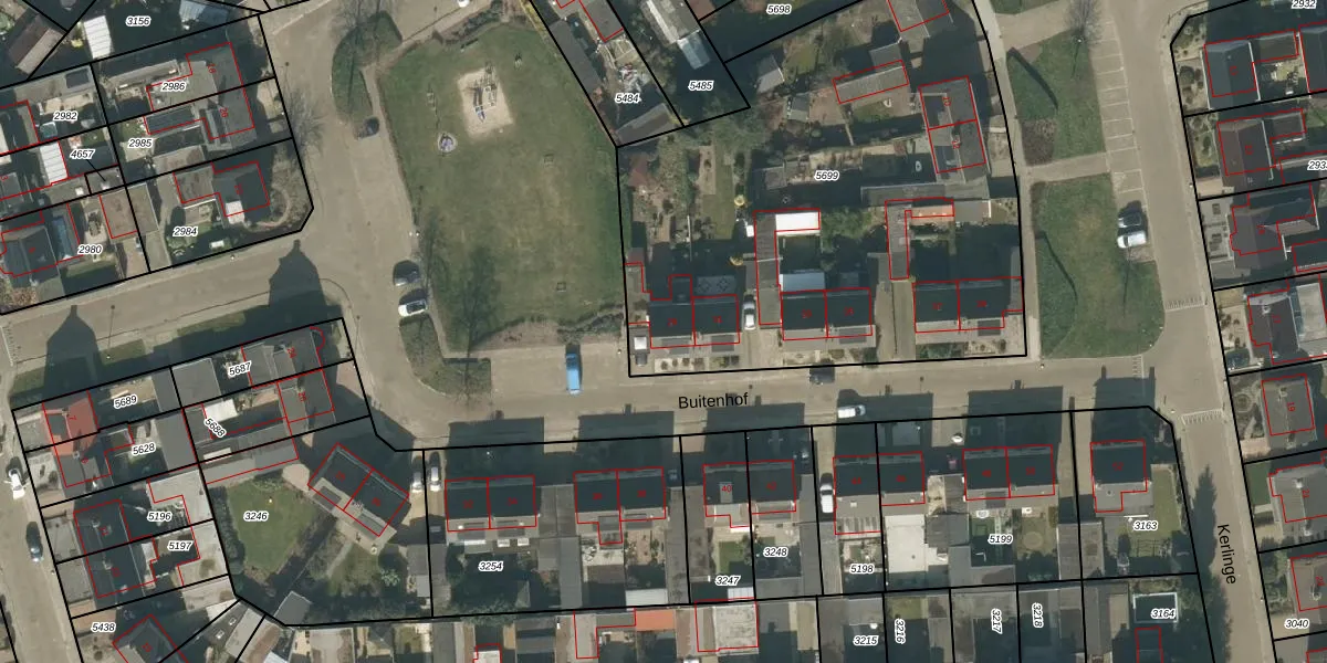 Het perceel waarop Buitenhof 29 staat heeft een oppervlakte van 2900 m². Dit is een zeer groot perceel. De perceeloppervlakte wordt geregistreerd door het Kadaster. Gedetailleerde informatie over de maten van dit perceel kunt u vinden in het rapport Kadastrale kaart met maatvoering van Buitenhof 29.