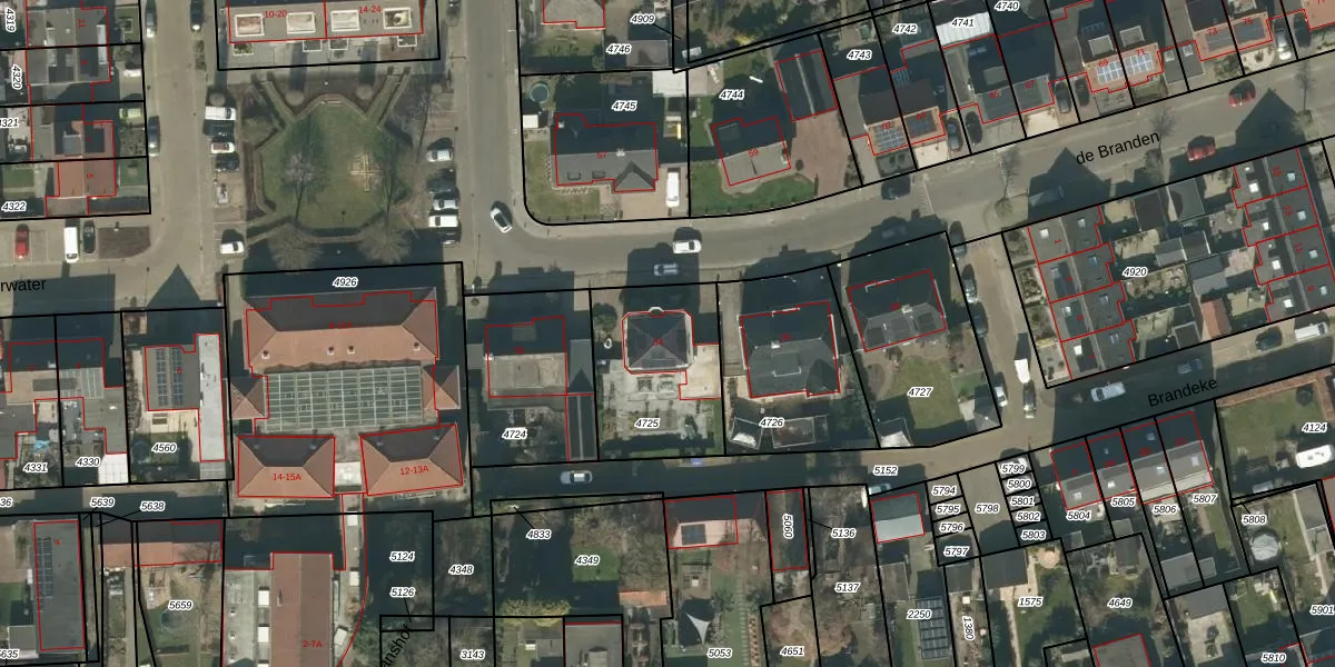 Het perceel waarop de Branden 34 staat heeft een oppervlakte van 492 m². Dit is een groot perceel. De perceeloppervlakte wordt geregistreerd door het Kadaster. Gedetailleerde informatie over de maten van dit perceel kunt u vinden in het rapport Kadastrale kaart met maatvoering van de Branden 34.