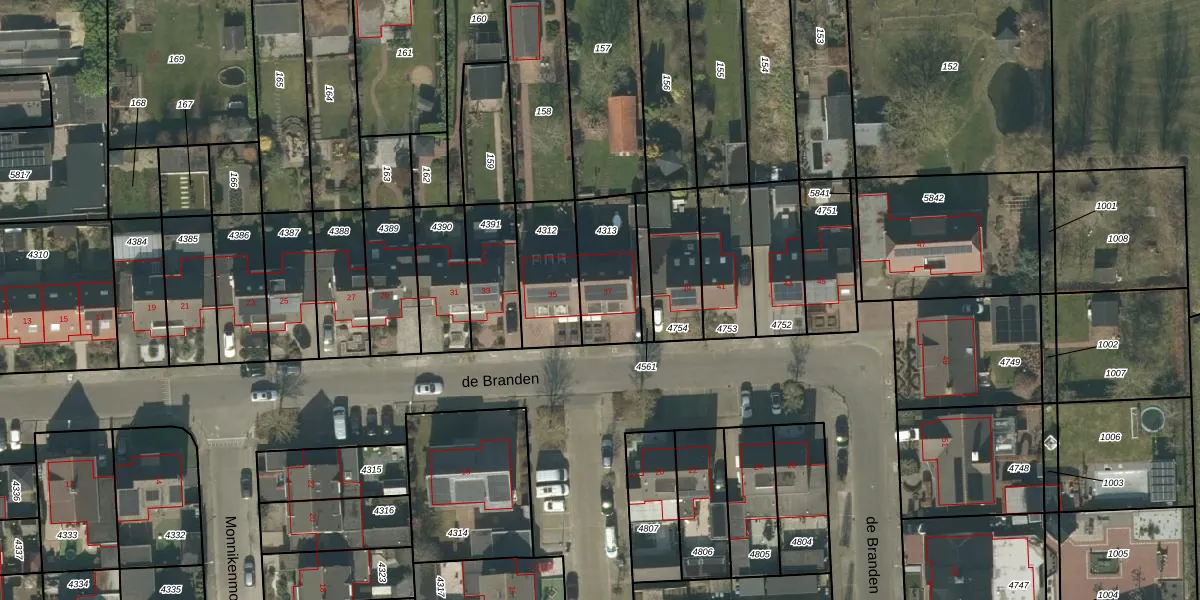 de Branden 37 is gelegen op kadastraal perceel RPN00F4313. Deze kadastrale aanduiding is uniek en wordt gebruikt door het Kadaster om eigendomsrechten en andere zakelijke rechten vast te leggen. Het perceel maakt onderdeel uit van de kadastrale gemeente Rucphen.