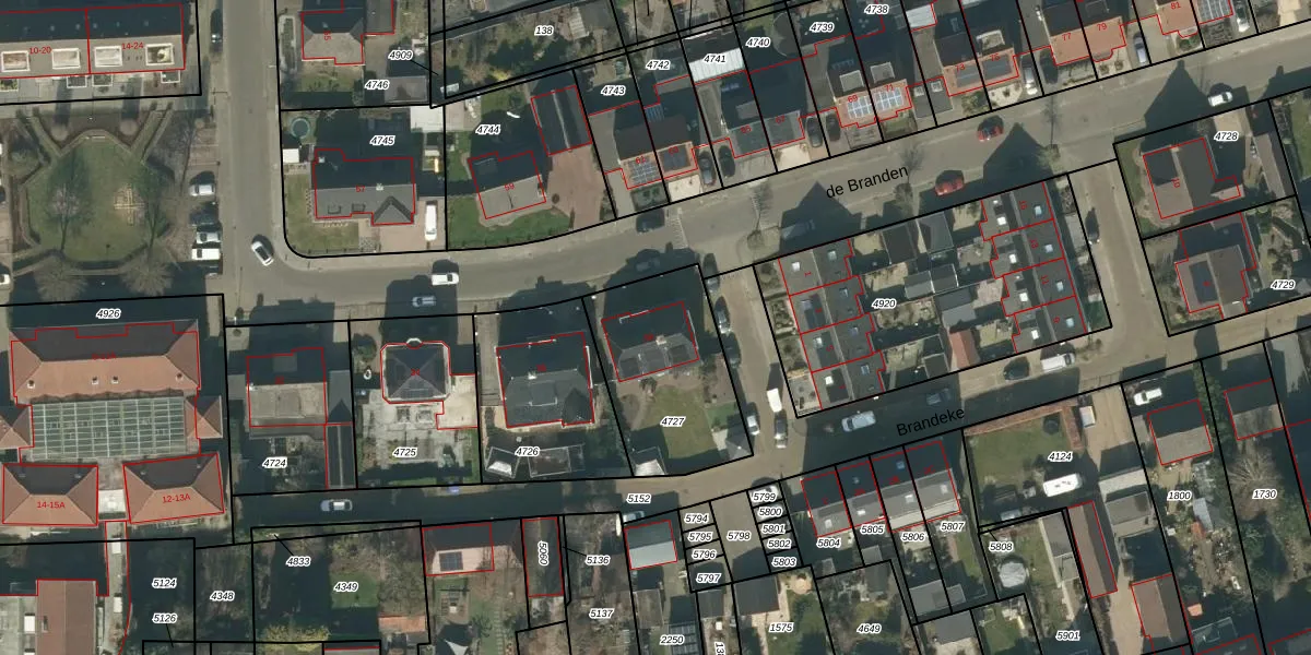 Gebruik de zoekbalk of klik op een perceel voor informatie over de adressen binnen dit perceel.