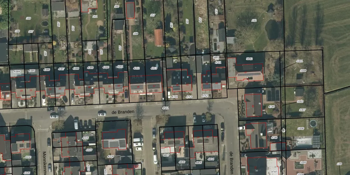 Het perceel waarop de Branden 39 staat heeft een oppervlakte van 212 m². Dit is een middelgroot perceel. De perceeloppervlakte wordt geregistreerd door het Kadaster. Gedetailleerde informatie over de maten van dit perceel kunt u vinden in het rapport Kadastrale kaart met maatvoering van de Branden 39.