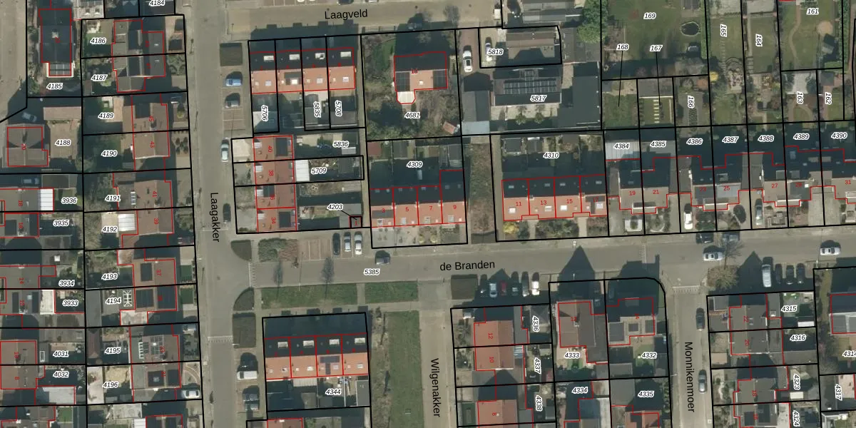 Het perceel waarop de Branden 7 staat heeft een oppervlakte van 556 m². Dit is een groot perceel. De perceeloppervlakte wordt geregistreerd door het Kadaster. Gedetailleerde informatie over de maten van dit perceel kunt u vinden in het rapport Kadastrale kaart met maatvoering van de Branden 7.