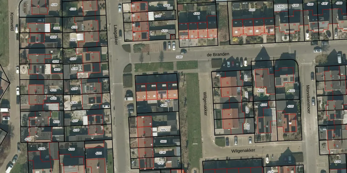 Het perceel waarop de Branden 8 staat heeft een oppervlakte van 530 m². Dit is een groot perceel. De perceeloppervlakte wordt geregistreerd door het Kadaster. Gedetailleerde informatie over de maten van dit perceel kunt u vinden in het rapport Kadastrale kaart met maatvoering van de Branden 8.
