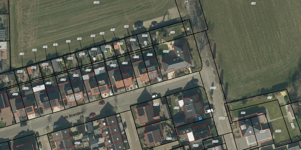 de Branden 83 is gelegen op kadastraal perceel RPN00F4732. Deze kadastrale aanduiding is uniek en wordt gebruikt door het Kadaster om eigendomsrechten en andere zakelijke rechten vast te leggen. Het perceel maakt onderdeel uit van de kadastrale gemeente Rucphen.