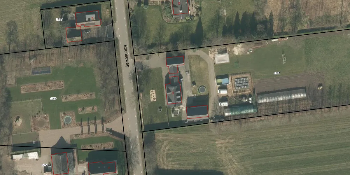 Het perceel waarop Ettenseweg 60 staat heeft een oppervlakte van 6905 m². Dit is een zeer groot perceel. De perceeloppervlakte wordt geregistreerd door het Kadaster. Gedetailleerde informatie over de maten van dit perceel kunt u vinden in het rapport Kadastrale kaart met maatvoering van Ettenseweg 60.