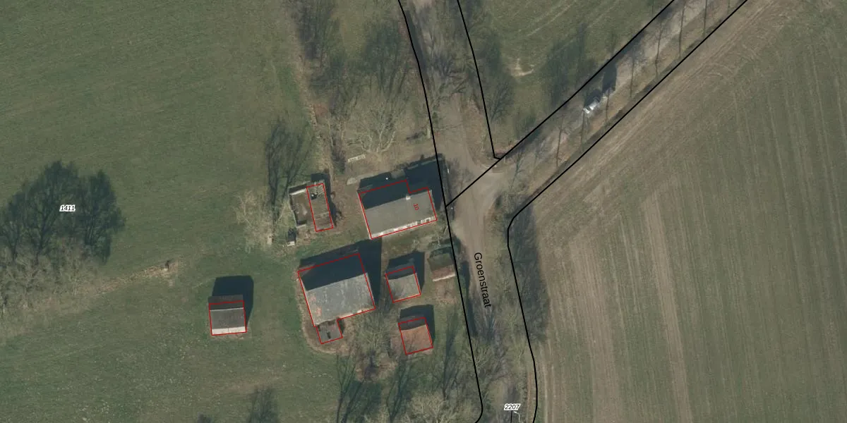 Het perceel waarop Groenstraat 10 staat heeft een oppervlakte van 2,9 ha. Dit is een zeer groot perceel. De perceeloppervlakte wordt geregistreerd door het Kadaster. Gedetailleerde informatie over de maten van dit perceel kunt u vinden in het rapport Kadastrale kaart met maatvoering van Groenstraat 10.