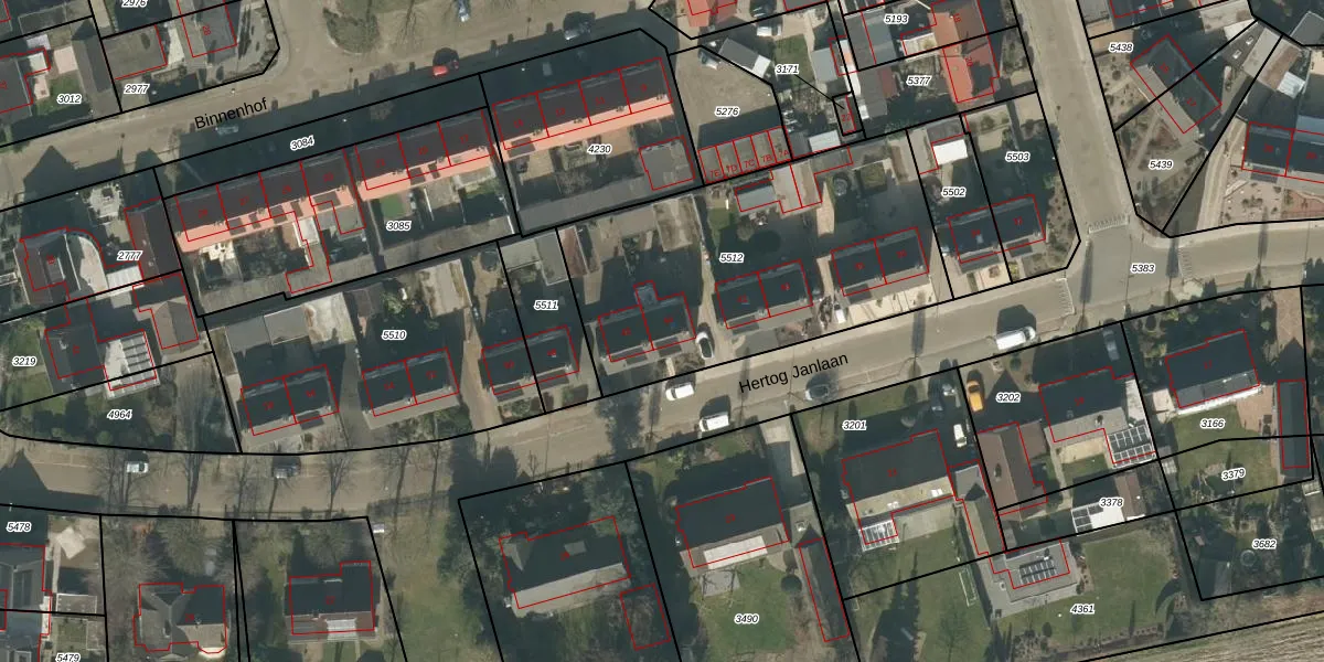 Hertog Janlaan 44 is gelegen op kadastraal perceel RPN00F5512. Deze kadastrale aanduiding is uniek en wordt gebruikt door het Kadaster om eigendomsrechten en andere zakelijke rechten vast te leggen. Het perceel maakt onderdeel uit van de kadastrale gemeente Rucphen.