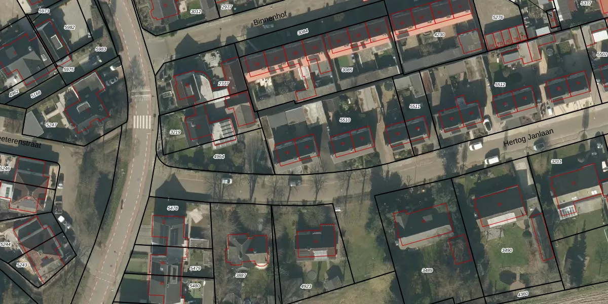 Hertog Janlaan 56 is gelegen op kadastraal perceel RPN00F5510. Deze kadastrale aanduiding is uniek en wordt gebruikt door het Kadaster om eigendomsrechten en andere zakelijke rechten vast te leggen. Het perceel maakt onderdeel uit van de kadastrale gemeente Rucphen.