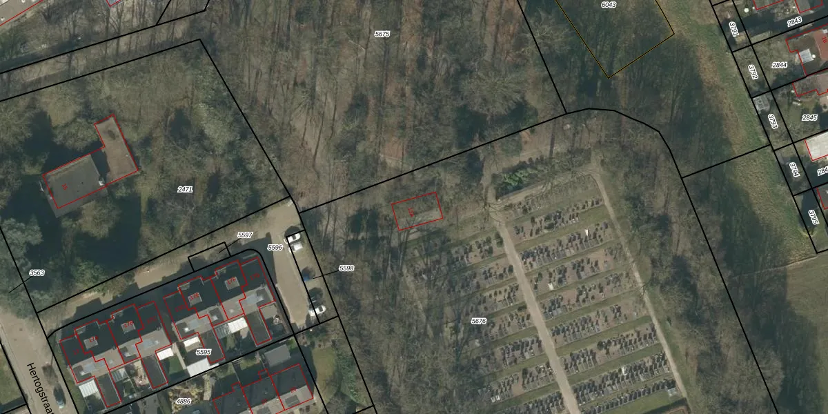 Het perceel waarop Hertogstraat 13-A staat heeft een oppervlakte van 1,2 ha. Dit is een zeer groot perceel. De perceeloppervlakte wordt geregistreerd door het Kadaster. Gedetailleerde informatie over de maten van dit perceel kunt u vinden in het rapport Kadastrale kaart met maatvoering van Hertogstraat 13-A.