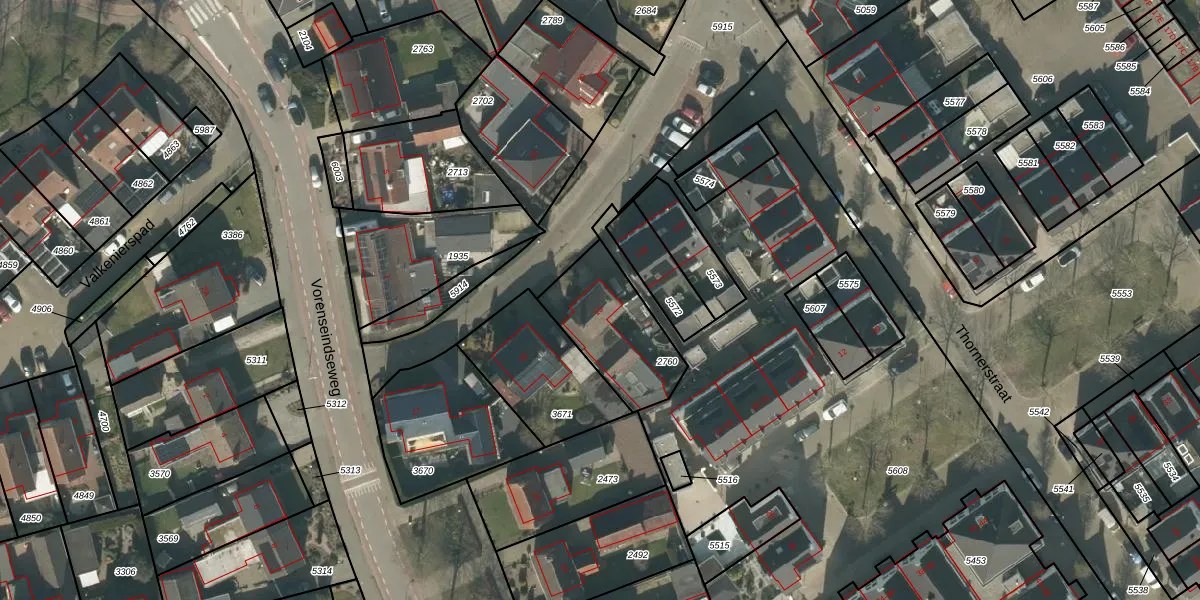 Gebruik de zoekbalk of klik op een perceel voor informatie over de adressen binnen dit perceel.