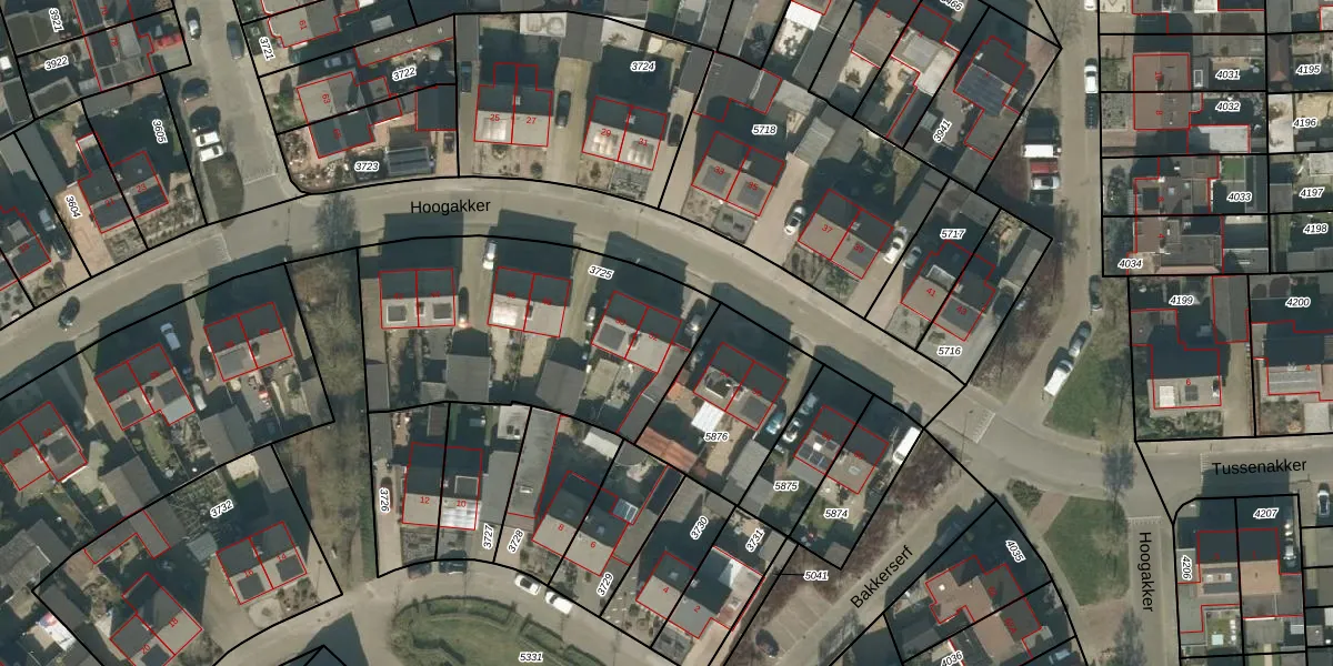 Het perceel waarop Hoogakker 52 staat heeft een oppervlakte van 1215 m². Dit is een zeer groot perceel. De perceeloppervlakte wordt geregistreerd door het Kadaster. Gedetailleerde informatie over de maten van dit perceel kunt u vinden in het rapport Kadastrale kaart met maatvoering van Hoogakker 52.
