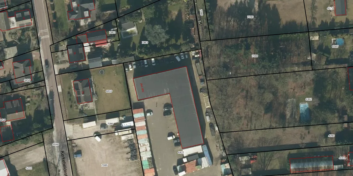 Het perceel waarop Kerkeheidestraat 26-D staat heeft een oppervlakte van 6031 m². Dit is een zeer groot perceel. De perceeloppervlakte wordt geregistreerd door het Kadaster. Gedetailleerde informatie over de maten van dit perceel kunt u vinden in het rapport Kadastrale kaart met maatvoering van Kerkeheidestraat 26-D.