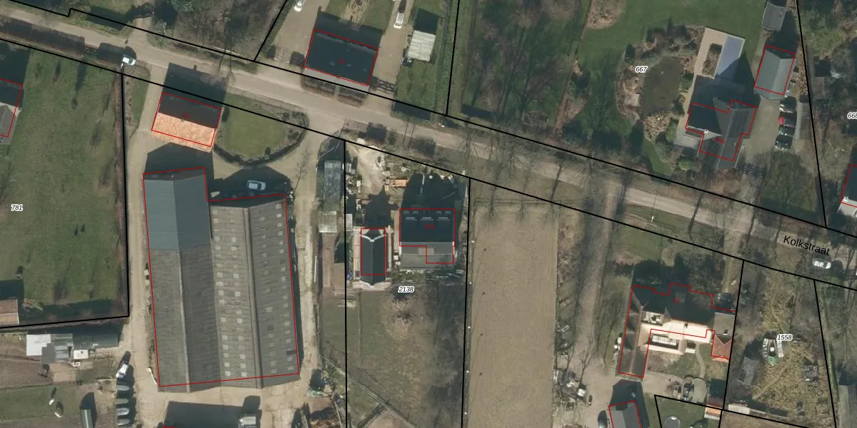 Het perceel waarop Kolkstraat 12-A staat heeft een oppervlakte van 1965 m². Dit is een zeer groot perceel. De perceeloppervlakte wordt geregistreerd door het Kadaster. Gedetailleerde informatie over de maten van dit perceel kunt u vinden in het rapport Kadastrale kaart met maatvoering van Kolkstraat 12-A.