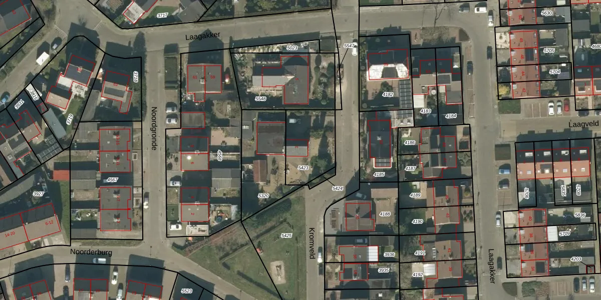 Gebruik de zoekbalk of klik op een perceel voor informatie over de adressen binnen dit perceel.