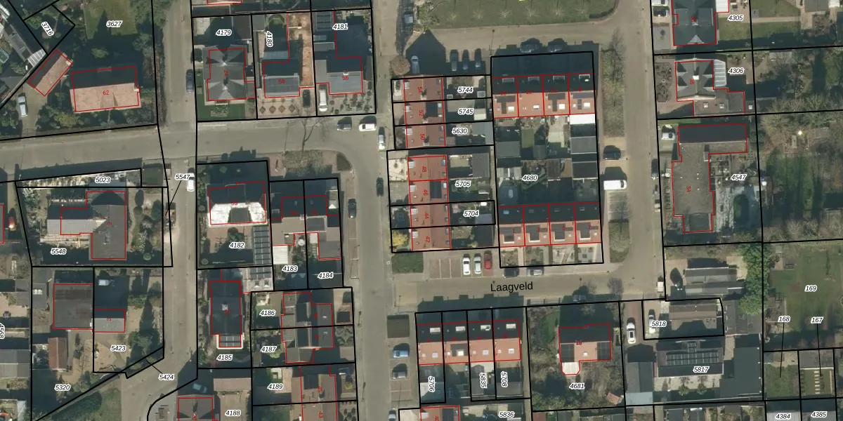 Gebruik de zoekbalk of klik op een perceel voor informatie over de adressen binnen dit perceel.