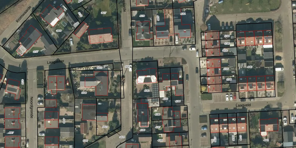 Het perceel waarop Laagakker 55 staat heeft een oppervlakte van 437 m². Dit is een groot perceel. De perceeloppervlakte wordt geregistreerd door het Kadaster. Gedetailleerde informatie over de maten van dit perceel kunt u vinden in het rapport Kadastrale kaart met maatvoering van Laagakker 55.