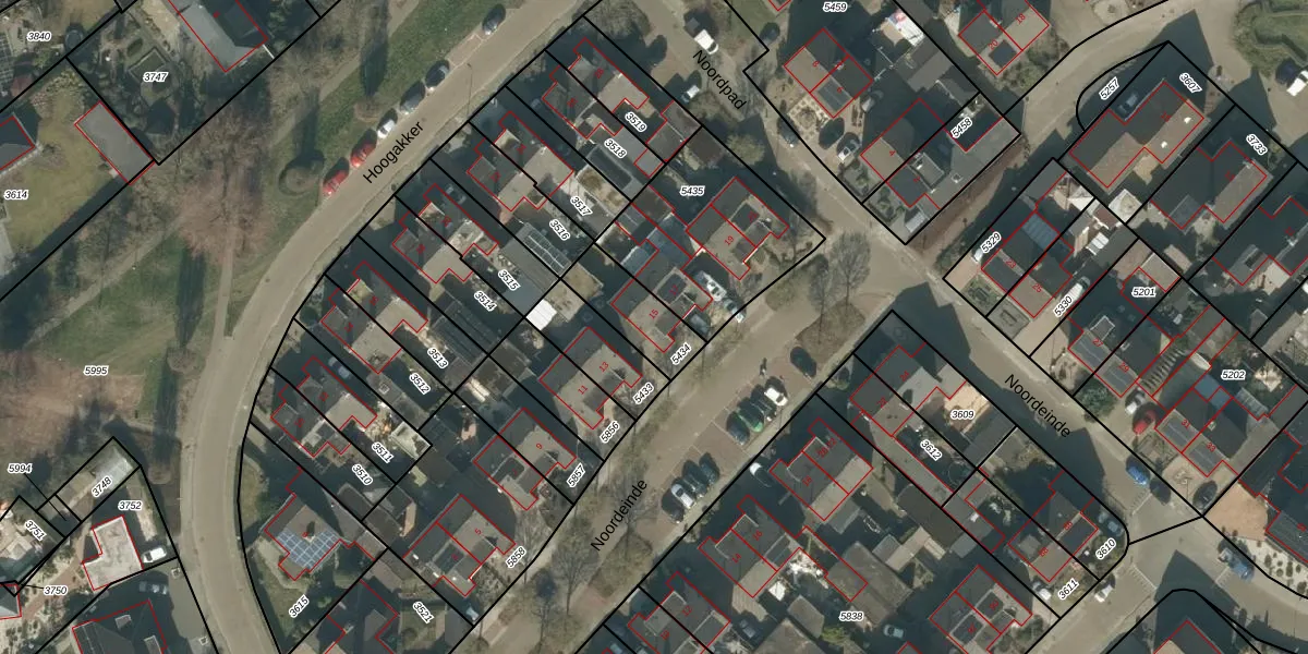 Het perceel waarop Noordeinde 15 staat heeft een oppervlakte van 185 m². Dit is een middelgroot perceel. De perceeloppervlakte wordt geregistreerd door het Kadaster. Gedetailleerde informatie over de maten van dit perceel kunt u vinden in het rapport Kadastrale kaart met maatvoering van Noordeinde 15.